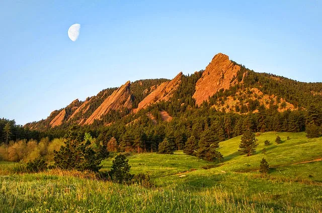 The Flatirons are striking rock formations located just west of Boulder, Colorado, and are one of the city’s most recognizable natural features. These massive, slanted sandstone slabs rise dramatically along the eastern slope of Green Mountain, creating a stunning backdrop for the city. There are five main Flatirons, numbered from north to south, and when locals say “The Flatirons,” they often mean these five. A favorite spot for hiking, rock climbing, and photography, the Flatirons offer both adventure and beauty — making them a must-see for anyone visiting Boulder.